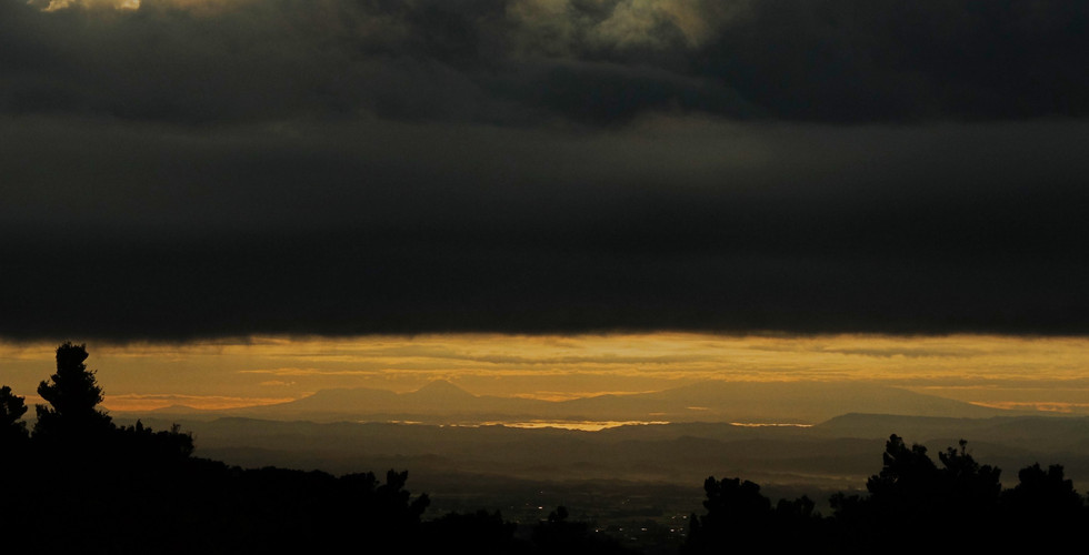 Als wir den Vulkan Taranaki erreichten, hüllte er sich in eine dicke Wolkendecke und wir mussten noch einen Tag lang warten, bis wir am Berg wandern gehen konnten. So schön wie die Wanderung war, versteckte sich der Vulkan oft in den Wolken und wir hatten nur selten freien Blick auf den Berg. Aber dann, an einem frühen Morgen, mit einem schönen Sonnenaufgang, wurden wir mit klarer Sicht auf Mt. Taranaki belohnt.